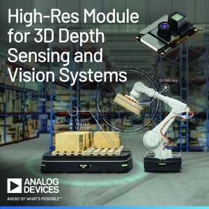 Analog Devices Inc. (ADI) announced the industry's first high-resolution, industrial-grade indirect time-of-flight (iToF) module for 3D depth measurement and vision systems. The ADTF3175 module allows cameras and sensors to perceive 3D space with a resolution of 1 megapixel. It offers accurate ±3mm iToF technology available for machine vision applications including industrial automation, logistics, healthcare and augmented reality.