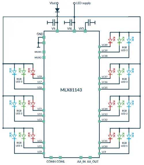Вона називається MLX81143 і реалізує CAN-over-UART для керування окремими Світлодіоди, і компанія стверджує, що забезпечує компенсацію дрейфу кольору в реальному часі, спричиненого змінами навколишнього середовища, і точність змішування кольорів менше 1%.